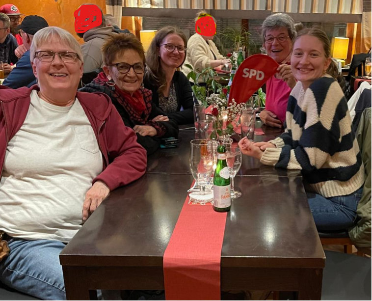 Wir wollen als SPD-Frauen im Ort präsenter sein! Zukünftig wählen wir gezielt Lokale aus, in denen wir gesehen werden und leicht mit anderen Gästen ins Gespräch kommen können.